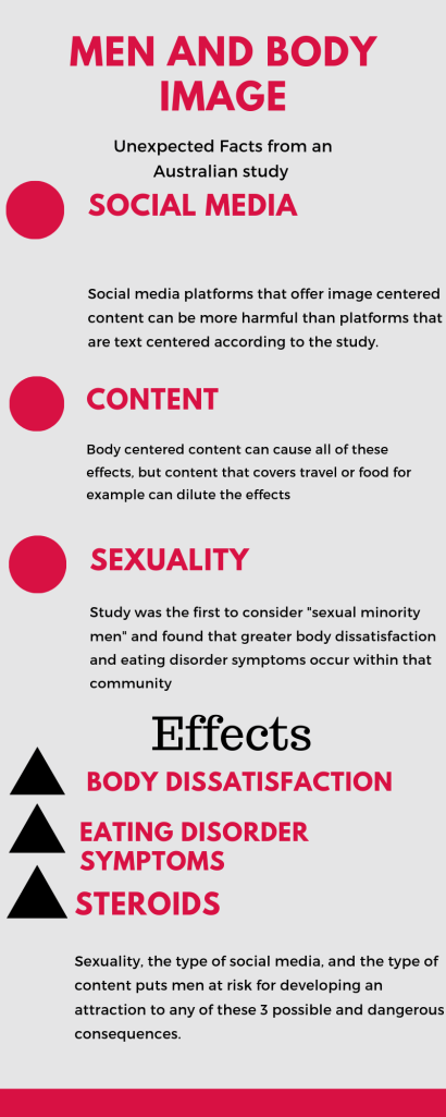 Body image is often talked about from a woman’s perspective. While a recent study from La Trobe University in Australia shows that forty-one percent of women and seventeen percent of men ages 15-19 felt concerned about their body image, that seventeen percent in men is often less explored.
